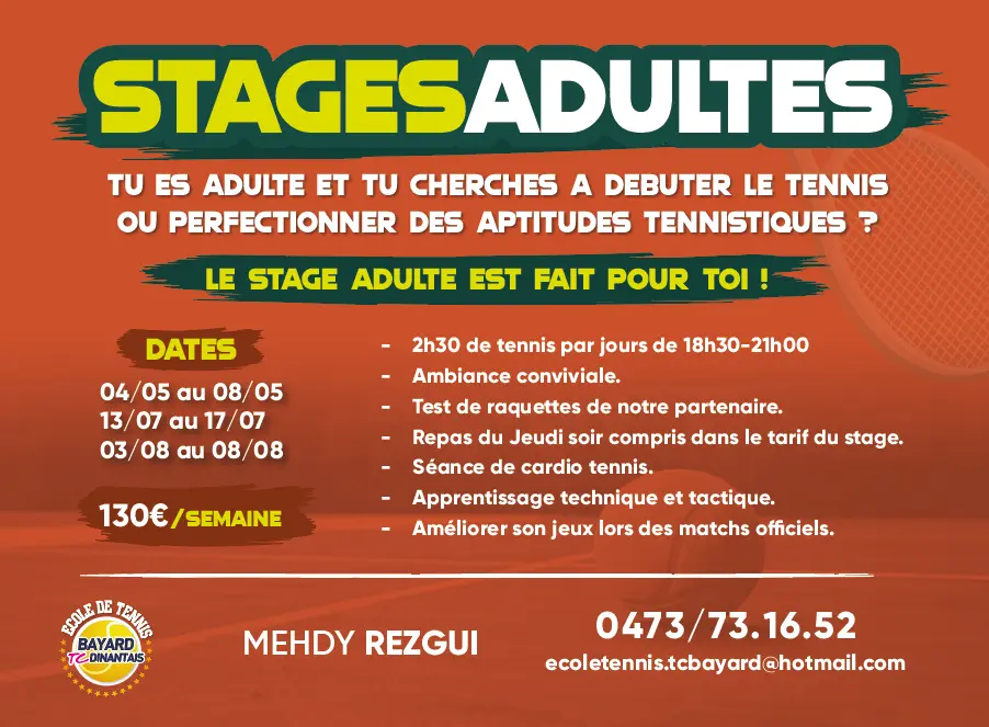 1Tu es adulte et tu cherches à débuter le tennis ou perfectionner tes aptitudes tennistiques ?